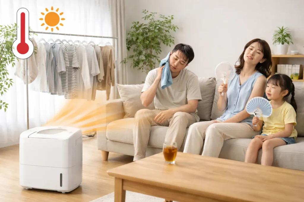 そのため、夏場に使うと「洗濯物は乾くけど部屋がつらい」と感じることがあります。