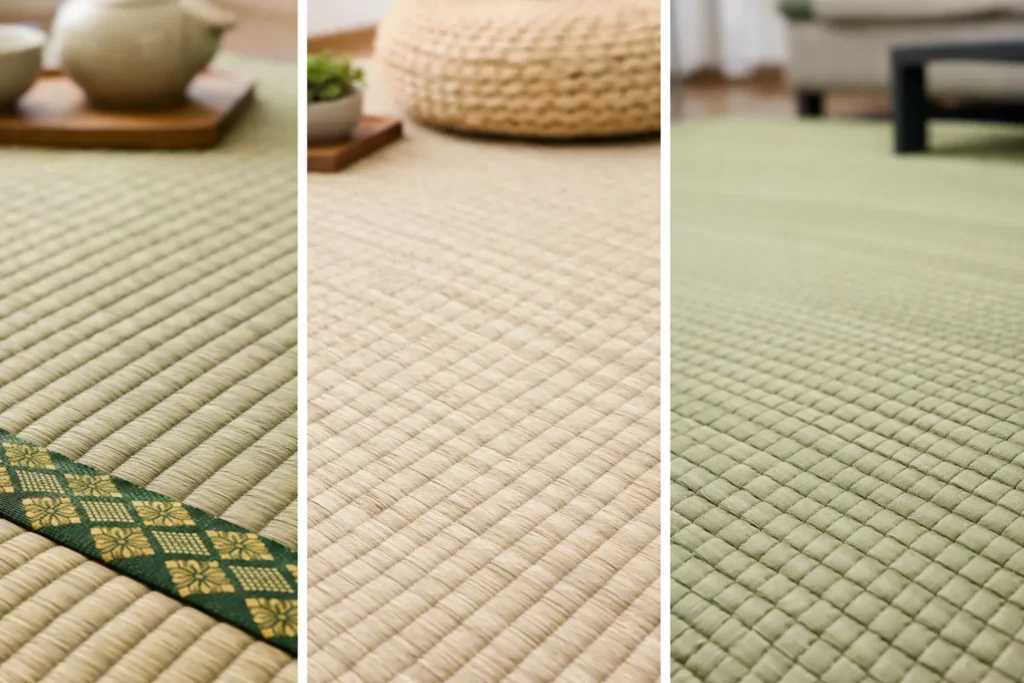 同じ和室でも、い草の畳と和紙畳、樹脂畳では、湿気への強さや日々の扱いやすさに差があります。